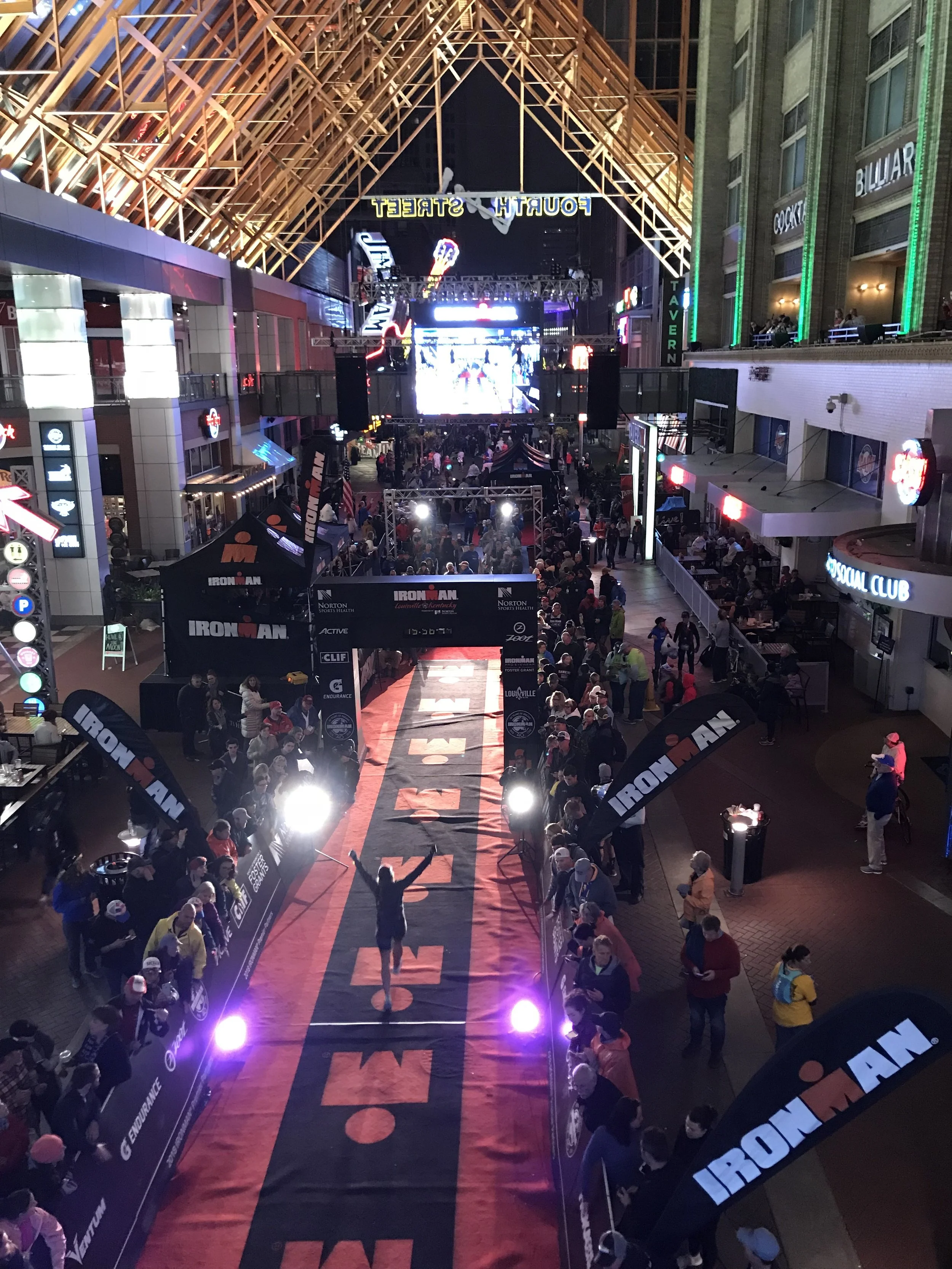 Run: Heading out onto the run, I saw Liz and Natalee’s family and learned that she was in front of me. I got my running legs and started my run plan of run 1 mile and walk for 1 minute. I saw John and Michael and felt like I could do this – my feet and ankles were hurting (not usual and figured it had to do with the cold bike ride). Once I hit the 2ndaid station, I realized that my plan would need to be adjusted so that I could walk through the aid stations. New plan – run between aid stations and walk from first garbage can to last garbage can of each aid station. The negotiations had started in my head and I was loosing. The aid stations were great and they had my favorite Kettle and Fire bone broth and I really enjoyed the grapes. Yes, the aid stations were my favorite part of the run! Just past mile 6, Natalee ran by me and I was so glad to see her. I would have loved to catch up and run with her but I knew our pace was similar and to catch I would have to run faster and not walk the aid stations. I tried for about a mile and then went back to my run/walk the aid stations plan and that is when the dark cloud came in and tried to convince me that I should just walk and that I had nothing to prove. At mile 13, I saw Michael. I told him that I was done and he told me to keep running. I tried but at mile 16, I was just ready to stop. I saw Natalee again around the 20-mile mark and we hugged. I really needed that! I walked for most of the next few miles until I finally convinced myself that I needed to get back to the run/walk plan if I was going to get this thing done. I found my legs again and my will to compete and finish. The last 4 miles felt like the first 4 miles. Coming around the corner and knowing that the finish line was just a few blocks away was amazing. I slowed down so that there was plenty of room between myself and the other finishers so that I wouldn’t have anyone messing up my finisher pictures. I did my best to enjoy the finish but I was just so happy to be done. It was a long day at the office and I was ready to punch the clock.
